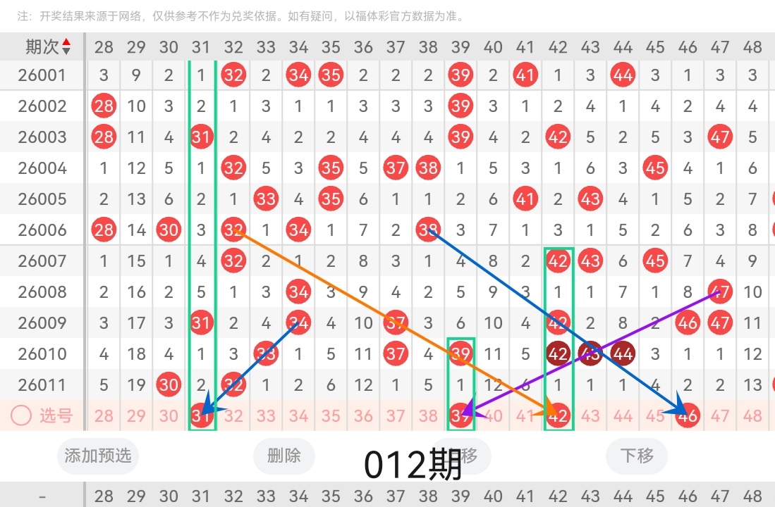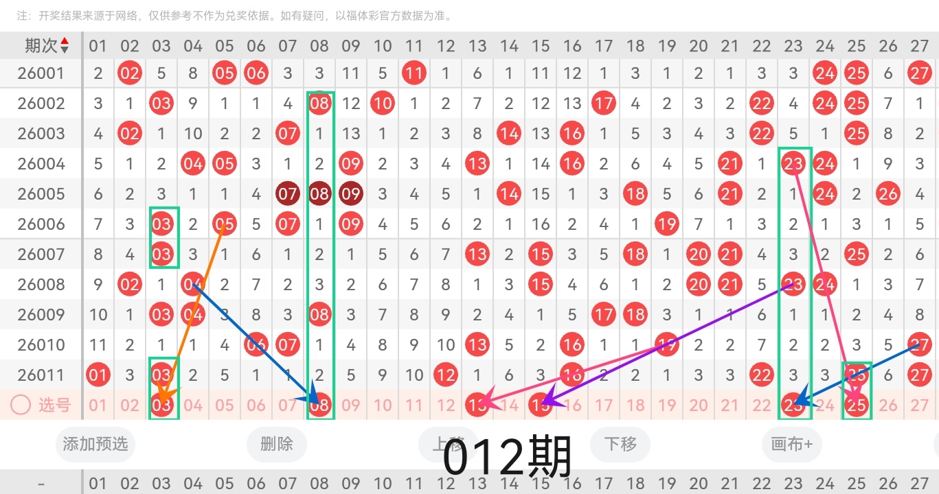 通过以上对上期的简单回顾,下面进入2026012期(下面简称本期)的选号分析: