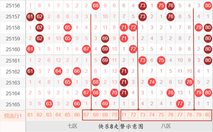 快乐8第25166期:冷热判断及号码分布【上期命中红胆、复式差一码】