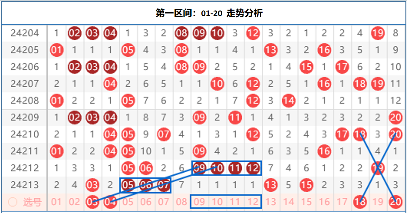 一区分析:【01-20】(走势图标注号码非小黄车大底,请谨慎参考,具体思路将在直播间分享讨论)