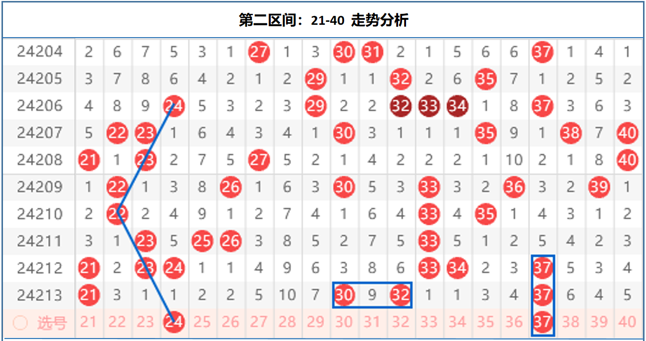 二区分析:【21-40】(走势图标注号码非小黄车大底,请谨慎参考,具体思路将在直播间分享讨论)