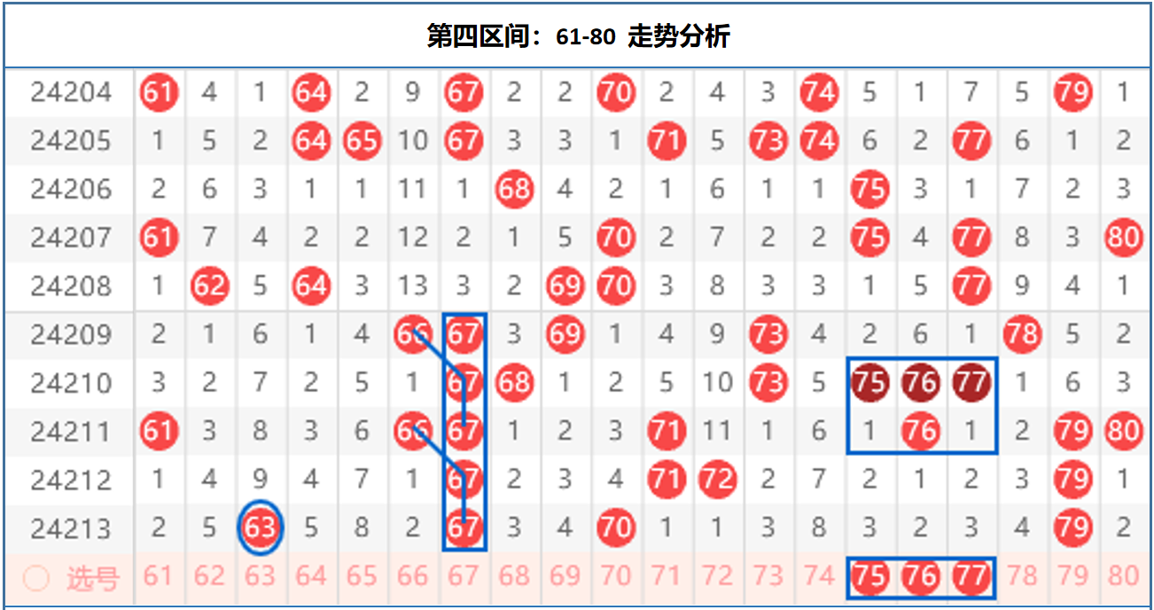 四区分析:【61-80】(走势图标注号码非小黄车大底,请谨慎参考,具体思路将在直播间分享讨论)