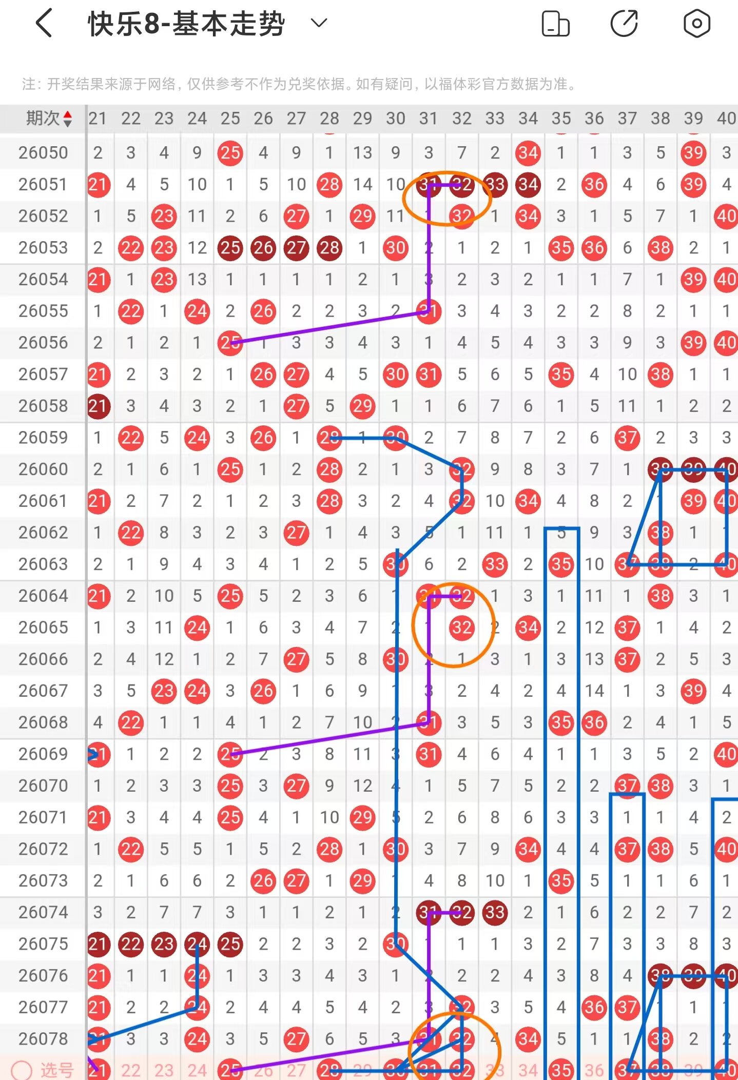 二区间小面积增加落号,一共开出七个号码球,本期考虑减少号码球的数量,注意斜连走势回补的21号码球,注意28号码球的回补,注意隔期对称回补的30、35号码球,注意近期31、32号码球同落,隔三期回补的31号码球,再到下期回补25号码球,注意直角三角形走势的30、31、32号码球,注意近期37、38、39、40、41号码球的走势相似,本期注意37、38、40号码球,因此二区间关注25-28-30-32-40,注意本区间的选二复式25-32-40。