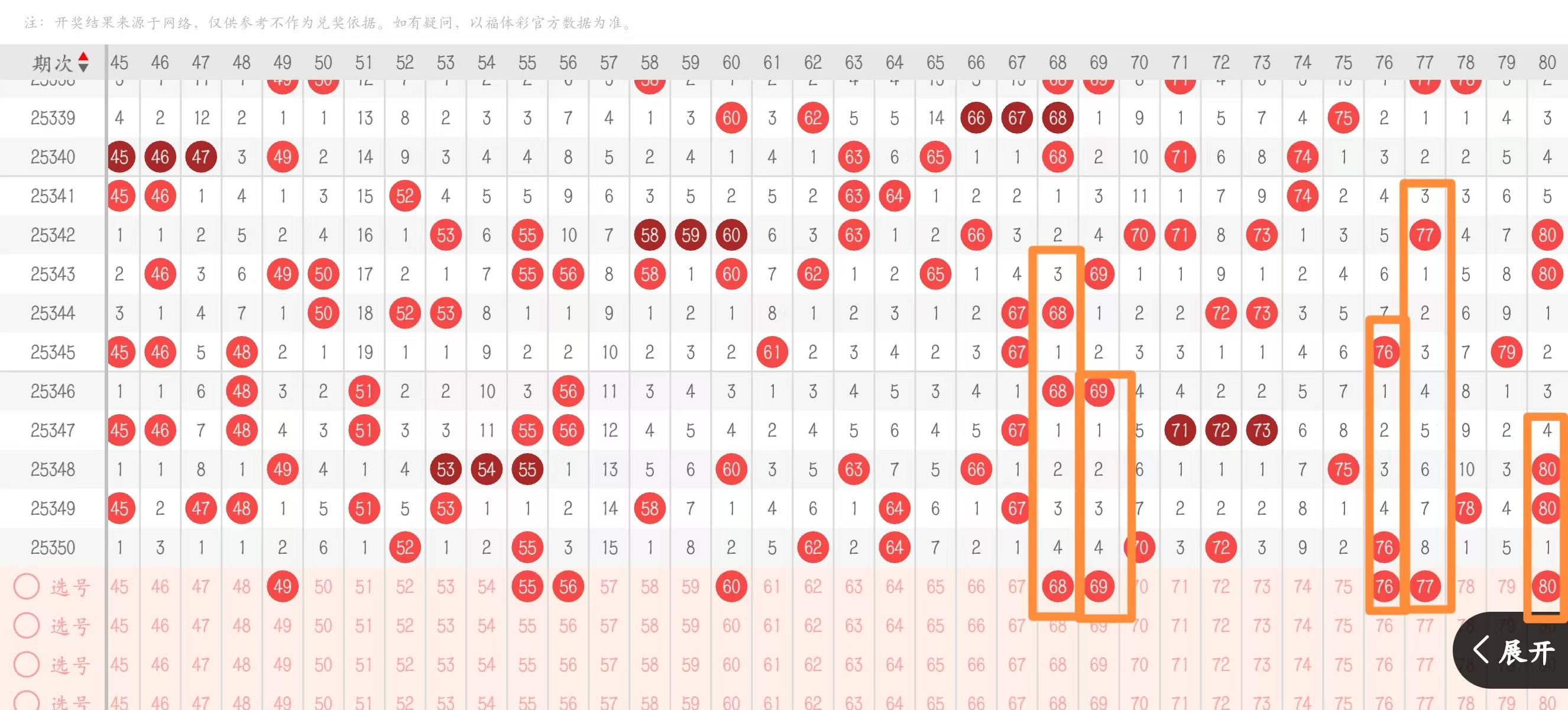 四区61-80:整个四区上期在六子头给到62 64两码,本期能做的就只能说是在以7子头给了70的分边位置去往六子通蔓延,分布号码68 69的对子回不一去体现回到7字头的侧重的小点上,大家可以去做的,就是说76下了去考虑关联74 78,但是本期如果说76在做74 78出现的情况较为少,所以说能涵盖的点还是以76 77的对子为主,然后去带尾部的双重空一的80。
