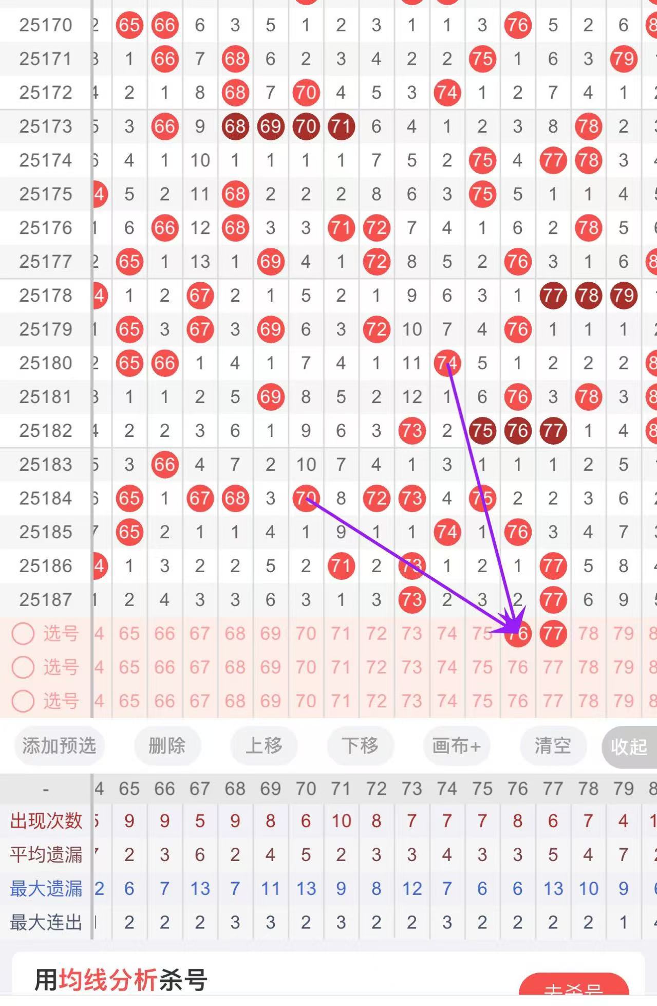 最后我们看一下这个60号到80号这个区间的话,可能也会回补一些号码,我主要是看好自己比较相对来说拿的比较准的一个区间或者是组合,我还是比较看好这个。你比如说676870,这三个是可能会有一个的然后呢,比较看好的是76,这个76如果是和这个77,如果是形成连号的话,嗯也是有可能的,所以说比较看好76相对看好7677。还有这个676870