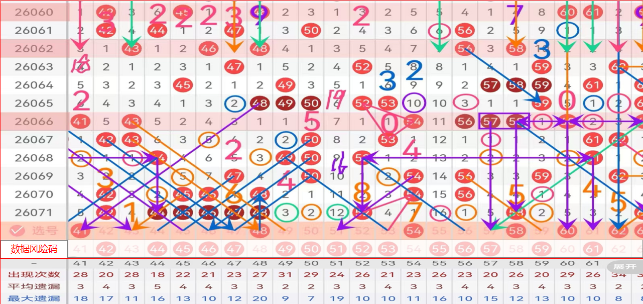三区间推荐主做号码: 41 48 54 58 60 防守号码:43 59;