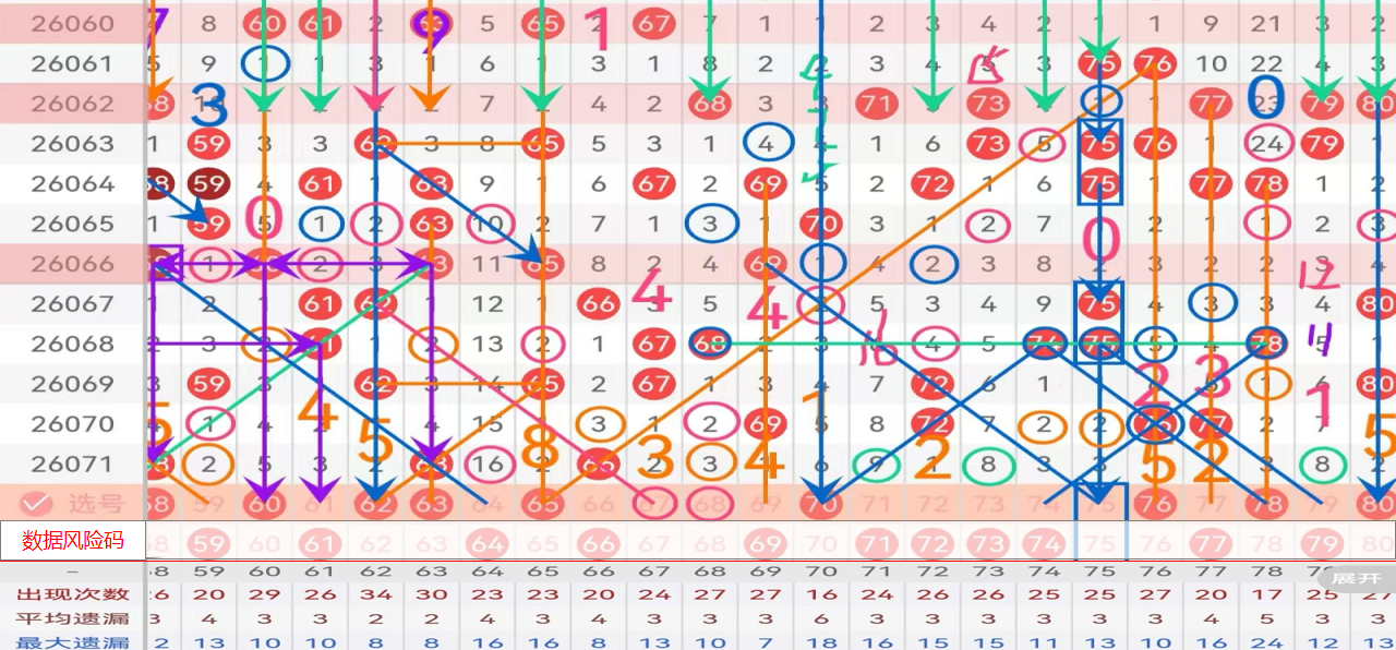 四区间给到主做号码球:62 63 65 70 76 78 80 防守号码:67 68 75;