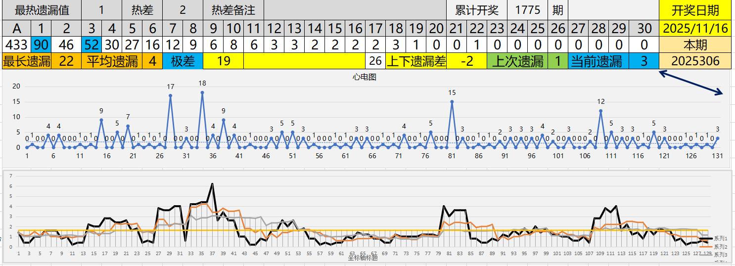 1、历史最长遗漏纪录22,当前遗漏3,距离极值还有19期。