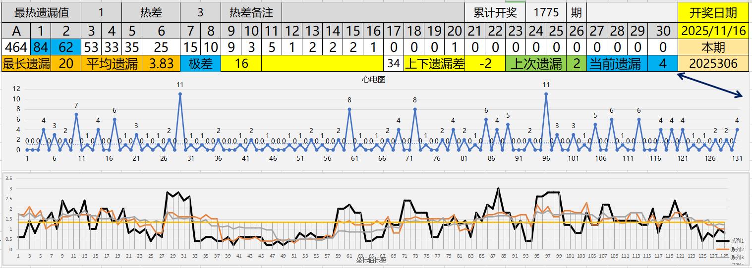 2、历史最长遗漏纪录20,当前遗漏4,距离极值还有16期。