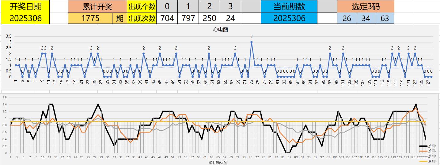 那这3码(26,34,63)同时开出情况如何呢?见下图: