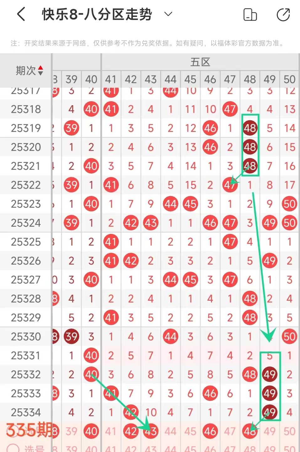 上期五区开42 49这2个号码,本期该区应该出号3个左右