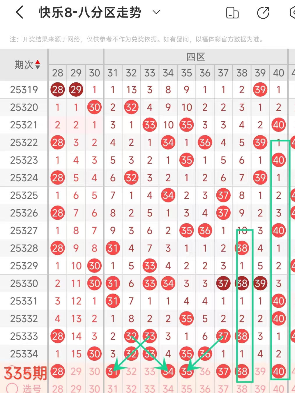 上期四区开出32 33 35 36这4个号码,本期考虑3个左右。