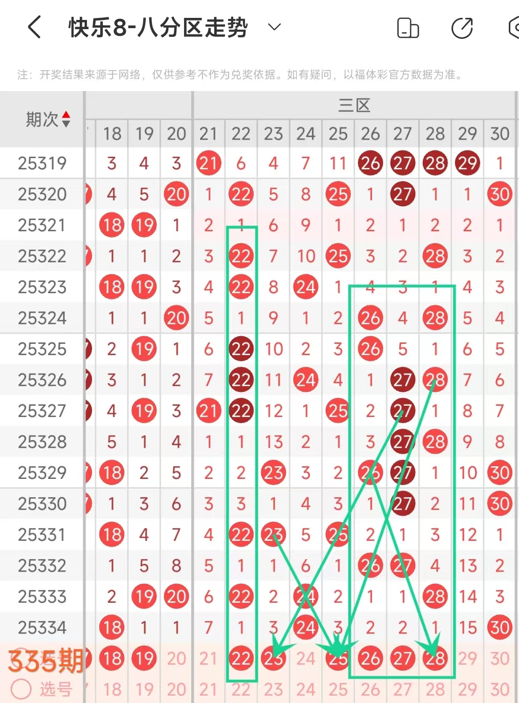 上期三区开出24 30这2个号码,本期考虑3个。