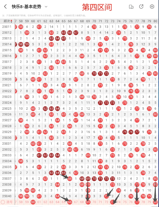 以上是我对本期快乐8(1-4)个区间的分析与思路。