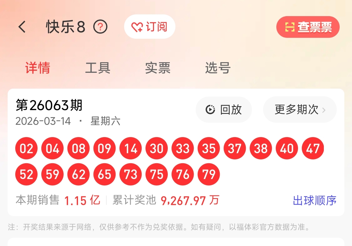 欢迎各位多友,我是浮星光,来到快乐8第2026063期开奖号码走势分析。让我来给大家分析一下本期快乐8的开奖号码的走势,分析选号。预祝各位多友行大运,一击命中,成功登顶!