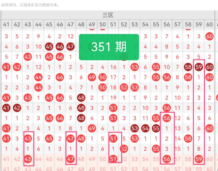 第三区间号码推荐:【43 47 51 56 59】