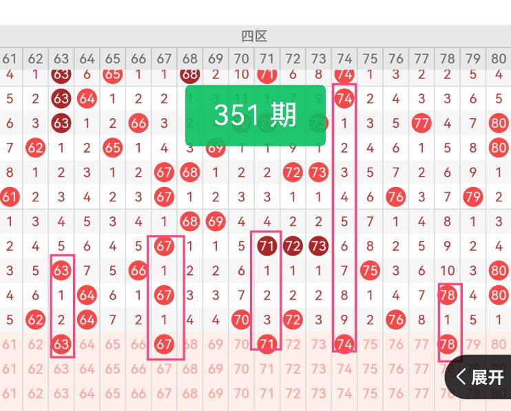 第四区间号码推荐:【63 67 71 74 78】