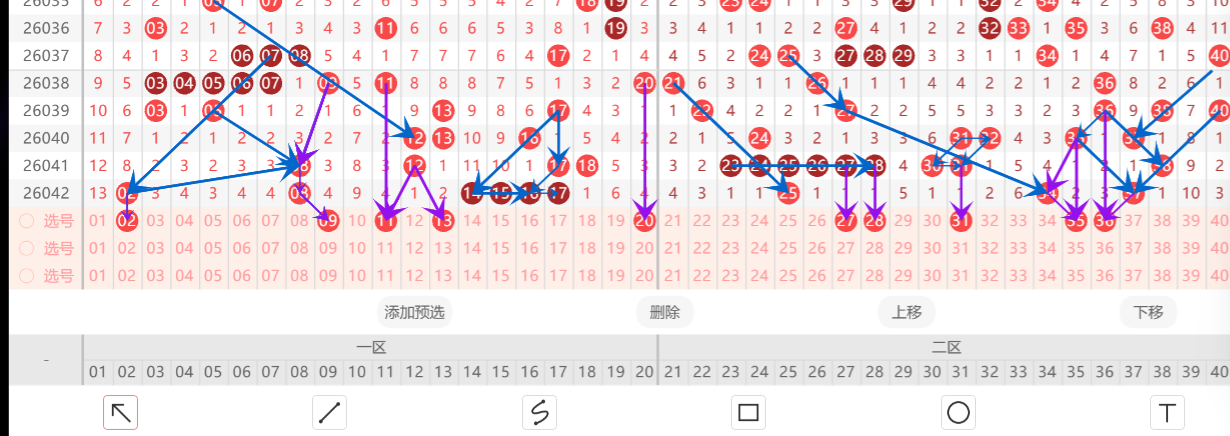 第二:判断第一区间热度会有所上升,注意一些奇数偶数搭配的联动号码,需关注斜连形态的号码。