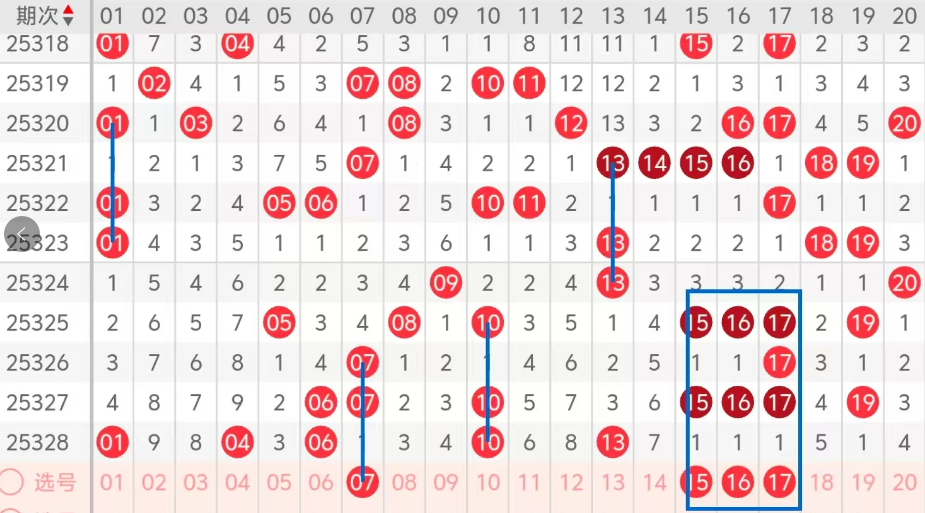 第一区间的走势分析:第一区间上期开出了五个号码球,主要的落号点位在一区间的前半区,走出了两奇三偶的形态走势,上期一区间的前半区落下了四个号码球,后半区落下了一个号码球,整个一区间处于走热的趋势,根据一区间的走势规律,今天的一区间我们主看热码的回补,前半区主看07这个号码球的落位,07走出了重码隔期回补的走势形态,后半区主看15 16 17这三个热码的落位,落下一码的机会还是有的,这四个号球建议大家打个四码复二比较稳妥,参考为主!