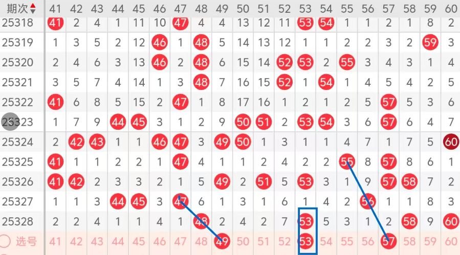 第三区间的走势分析:第三区间上期开出了四个号码球,主要的落号点位在三区间的后半区,走出了一奇三偶的形态走势,上期三区间的前半区落下了一个号码球,后半区落下了三个号码球,整个三区间处于走冷的趋势,根据三区间的走势规律,今天的三区间我们主看前半区49的落位,走出了斜连码的走势,再看后半区53 重码的落位,以及57斜连码的走势,这三个号球落下两码的机会很大,建议大家打个三胆拖,或者打个三码复二比较稳妥,参考为主!