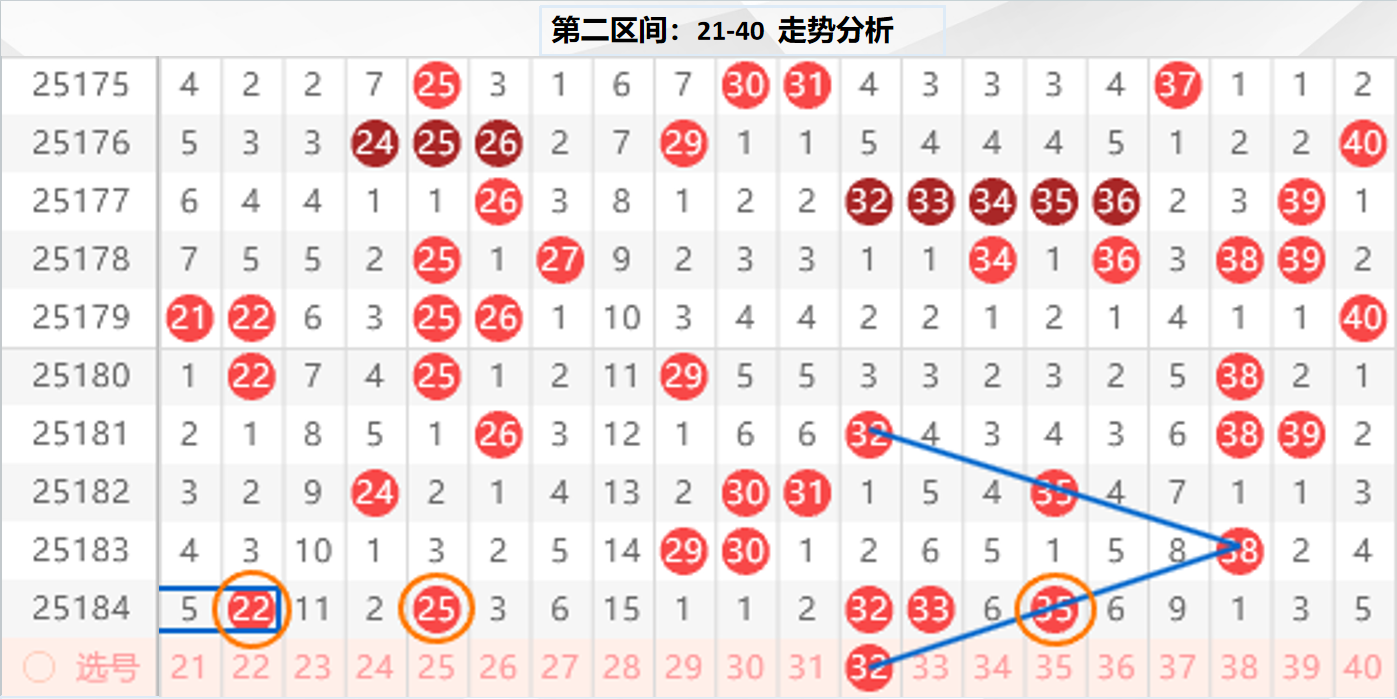 二区分析:【21-40】(走势图标注号码非小黄车大底,请谨慎参考,具体思路将在直播间分享讨论)