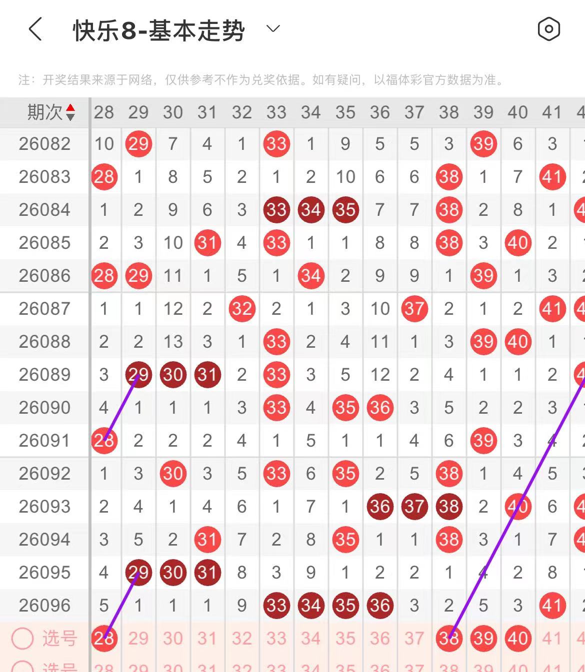 31-40区:本区间上期开出了四个号码,从号码走势图上看,该区出号个数有一定的规律性,本期出号个数应该还能保持在三个号码左右,有出号走势的号码有38号,斜连出号走势,防38.39.40开出三连的可能,这里需要注意的是,如果后半区开出不三连,则需要关注四连号边上号码32.37.