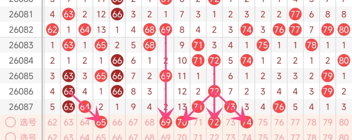 四区号码走势分析与推荐(61-80):