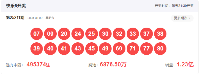 开奖号码:07 09 20 24 25 30 32 33 37 38 39 40 41 43 45 49 69 71 77 80