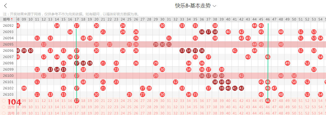 上期开奖前三号码04、06、11顺势落地,选号更重在巧思。本期盘面核心落点聚焦17—46号码区间。