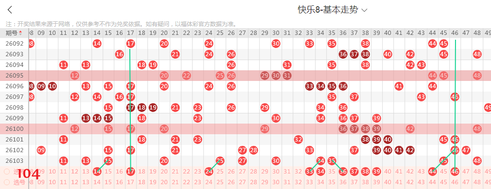 复盘筛选,走势详见,优质号码,重点留意: 14,24,33,34,36,37,38,39,44,