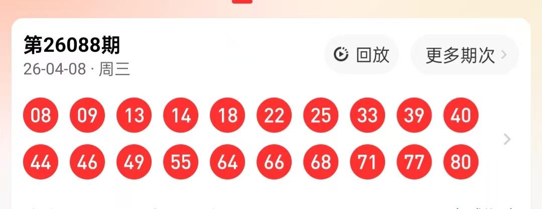 月奕冰快乐8第26089期号码走势分析