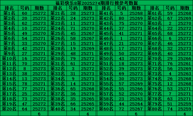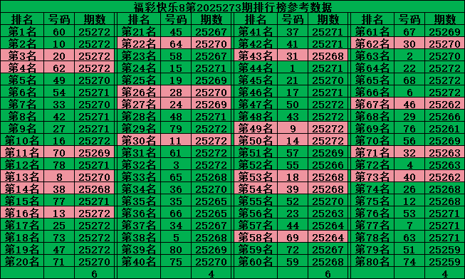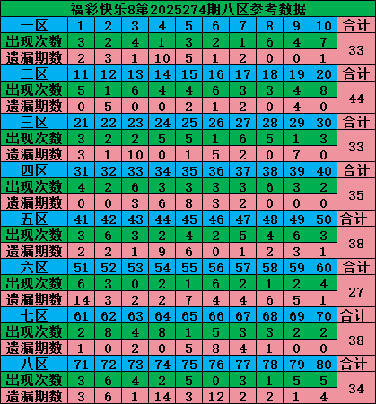 最后再把号码分为五区:一区01-16号、二区17-32号、三区33-48号、四区49-64号、五区65-80号,理论上每个区每期应该开出4个号码,2025273期五区比例:5:7:4:2:2