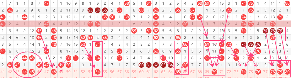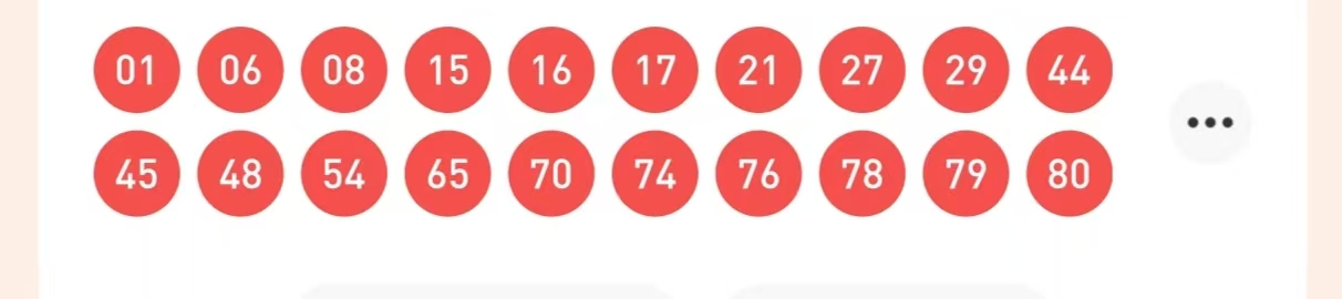 - 61-80区间:65、70、74、76、78、79、80(7个号,高区热度接着冲,79是重号+邻码的组合,65、70当冷号点缀,既保住热度又有花样)。