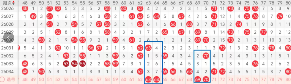 第四区间的走势分析:第四区间上期开出了七个号码球,主要的落号点位在四区间的前后半区,走出了两奇五偶的形态走势,上期四区间的前半区落下了四个号码球,后半区落下了三个号码球,整个四区间处于走热的趋势,根据四区间的走势规律,今天的四区间我们主看四区间姊妹对号码的落位,主看前半区63 64姊妹对的回补,也是夹码的落位,再看69 70姊妹对号码的落位,也是夹码的回补,注意63 69的组合以及64 70的组合,这四个号球建议大家打个四码复三,或者打个四码复二比较稳妥,参考为主!