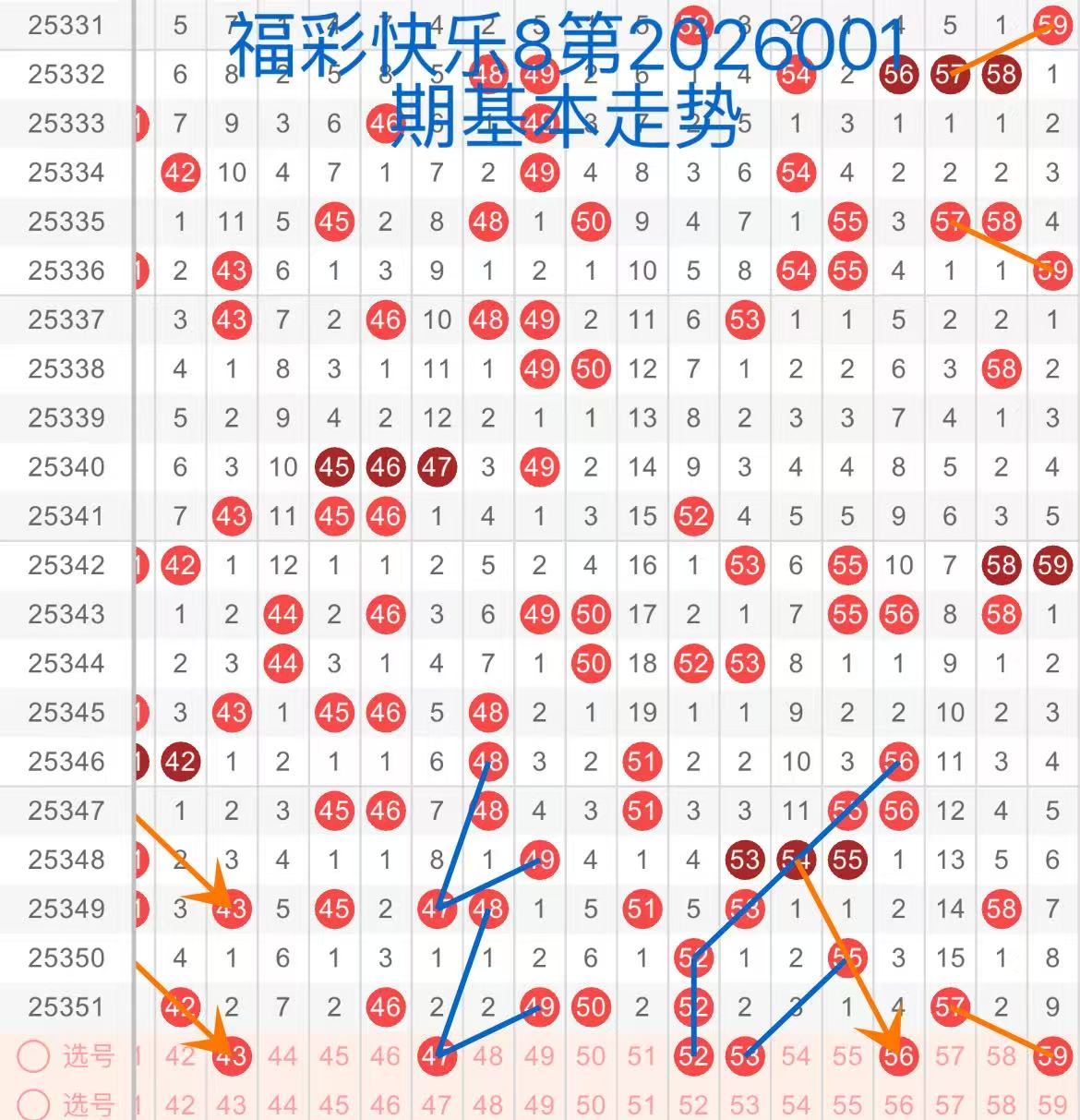 下面是我对2026001期福彩快乐8的分析和预判,希望通过我的分析能让大家今晚大满贯!福彩快乐8上期开奖号码如下图
