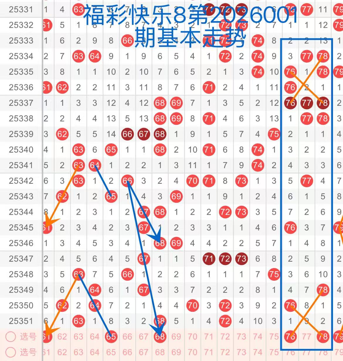 26001期福彩快乐8,走势综合分析(本期一胆参考65)