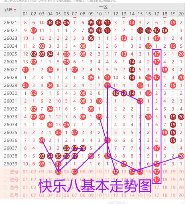 我们来看下一区的基本走势情况,上期开出了四枚开奖号码,本期预计开出4-5枚开奖号码,首先我们来看03 05在五连号下方奇数双码走重,那必要的就是在重号继续做二选一做延续形态,或者考虑三斜连的07奇数。13的遗漏8期孤码开出,重号或者分边形态的12 14考虑一码,15的平行奇数三斜连走势。17的重号上下对称形态