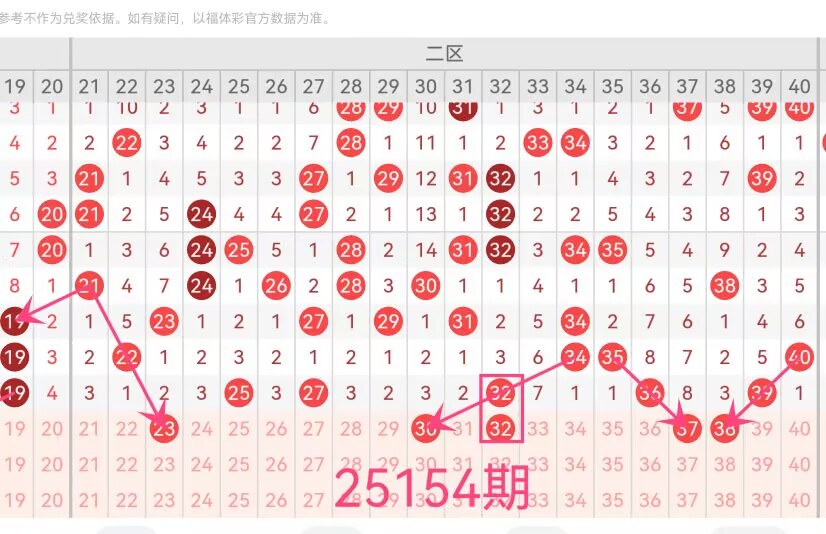21-40区间,上期仅开出5个号码(25 27 32 36 39),此区间出号较为平稳。这个区间最大的特点就是容易出现等距出号的情况,比如上期开出的36和39很可能带动37和38在本期出现。近期遗漏值适中的稳码值得关注,如号码23已经遗漏2期、30已经遗漏3期,这些号码符合“遗漏回补”规律,具有较高的会概率。热号32在最近7期出现4次,属于本区间较为热的号码之一,本期考虑号码32会继续出现的情况。因此综合推荐该区间号码【23 30 32 37 38】