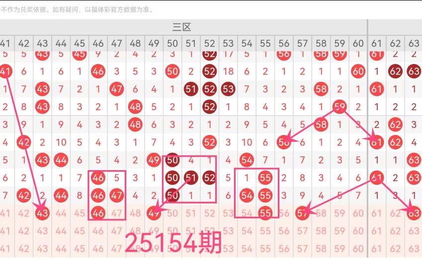 41-60区间,在上期开出了7个号码(42 44 46 47 50 54 55),此区间出号较为平稳,但短期内热度过热,本期可能会出现一定程度的降温,预计有2-3个号码的开出空间。号码46和51虽然上期已经开出,但是历史遗漏较大,本期有可能会继续出现,形成宠爱后形式。57遗漏9期,但其历史出号频率较高,值得特别关注。号码43和49作为本区间较冷的号码,存在一定的回补率,看好此号码的出现。因此综合推荐该区间号码【43 46 49 55 57】
