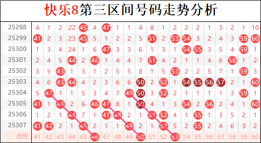 三区上一期也是开出六码,尤其是斜连走势成为当期与一区抗衡的唯一走势,本期三区斜连应该会转弱,毕竟上一期三区斜连中已经出现了两个四斜连的走势。所以本期三区布局上可转移形态布局,五斜连的下拉几乎成为必杀的走势。不过三区同时也出现了重号的接力走势,按照近期重号的折返走势来看,本期不排除重号在某个区间单次走热的可能。目前最明显的就是一区和三区的重号接力布局。三区目前失去了孤码的走势,尤其是三个区间同时走热,本期必有转温或转冷的区间出现,三子夺嫡必有损伤,所以究竟哪一个区间会获胜,大家一定要注意。