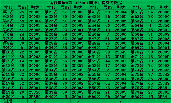 综上所述,福彩快乐8第2026007期推荐号码: