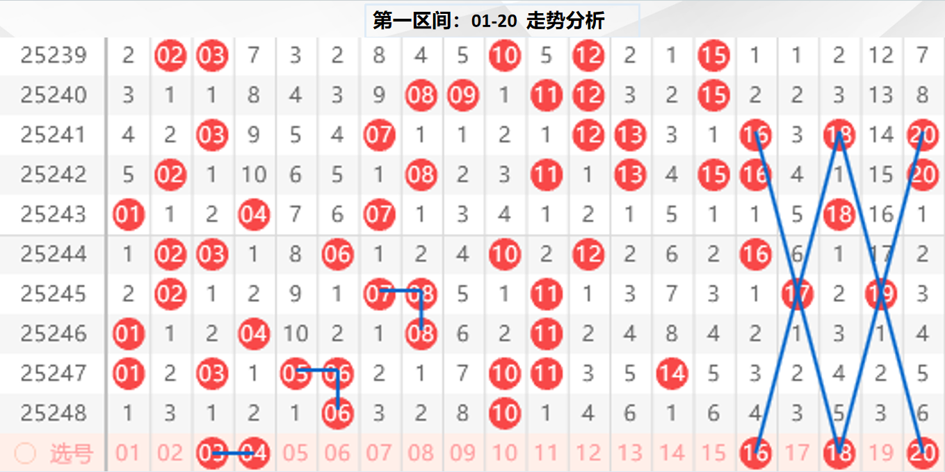一区分析:【01-20】(走势图标注号码非小黄车大底,请谨慎参考,具体思路将在直播间分享讨论)