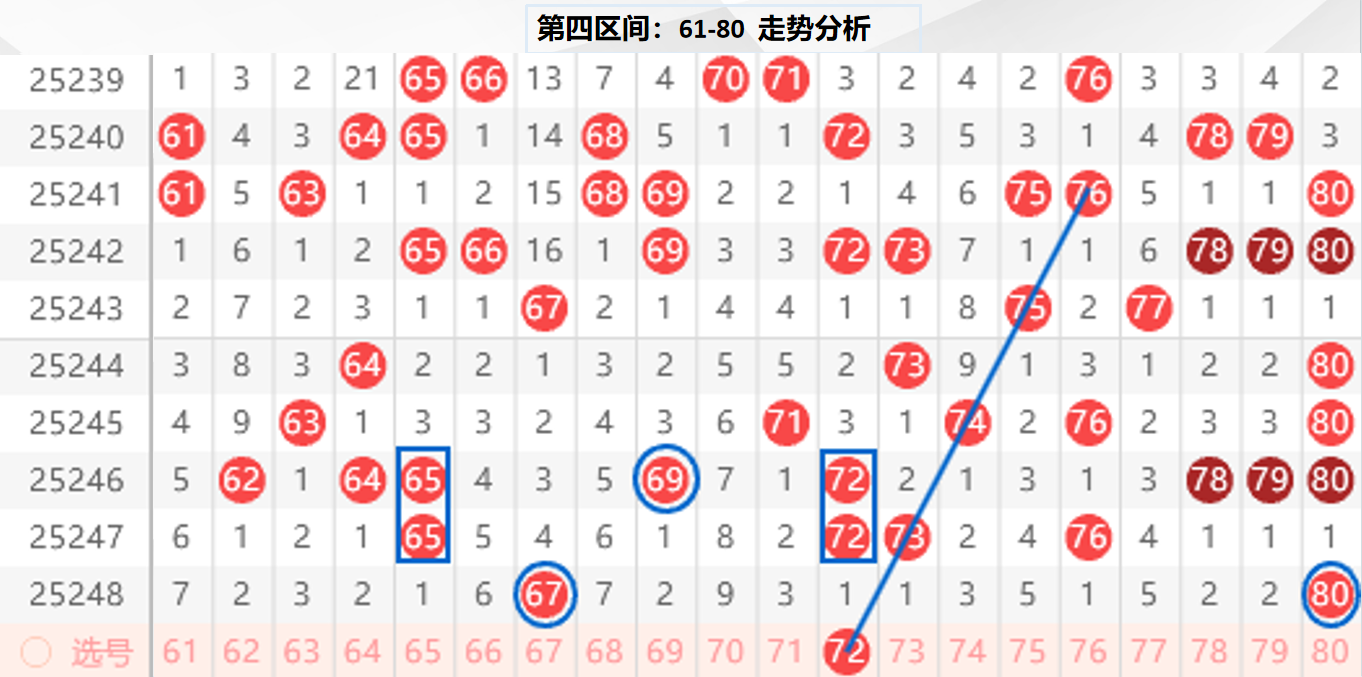 四区分析:【61-80】(走势图标注号码非小黄车大底,请谨慎参考,具体思路将在直播间分享讨论)