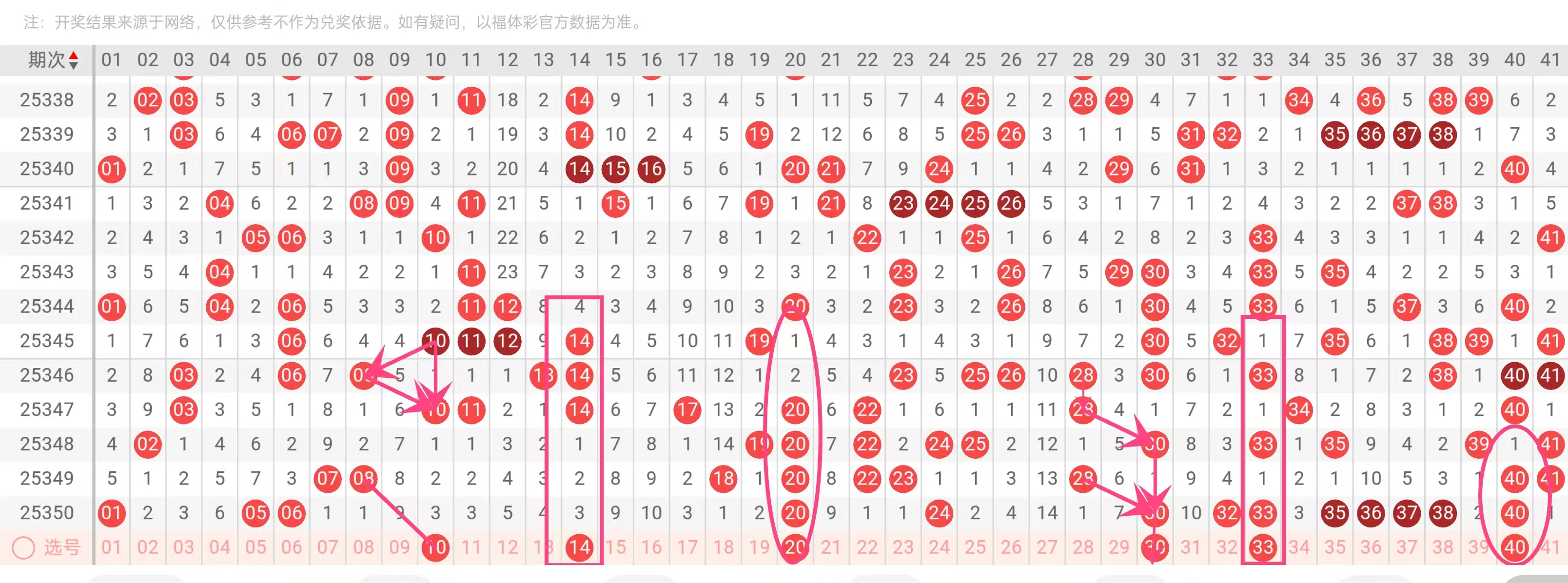 理由:14在近5期出现3次,属于前区温号转热标志。该号码常与10、17、22等同现,形成“中间小号集群”。14在近期开奖中多次作为“隔期重号”出现,符合“小步快跑”出号节奏,且遗漏值控制良好,具备持续跟号价值。