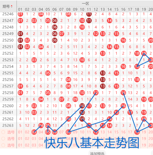 我们先来看下一区的基本走势情况,上期开出了六枚开奖号码,本期预测开出还是在均值五枚左右,首先我们来看04 05的孤码二连的开出,01 02 03考虑出号一枚,或者集中考虑一重一分边的走势形态如:03 05,06的三斜连走势,08的双线三斜连走势形态,12的第五期夹号走势。18的三斜连以及图中的形态走势,可以考虑12 18选择一码定位胆码。