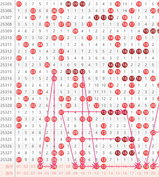 一区分析:【01-20】(走势图标注号码非小黄车大底,请谨慎参考,具体思路将在直播间分享讨论)