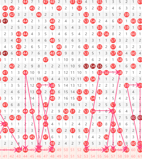 三区分析:【41-60】(走势图标注号码非小黄车大底,请谨慎参考,具体思路将在直播间分享讨论)