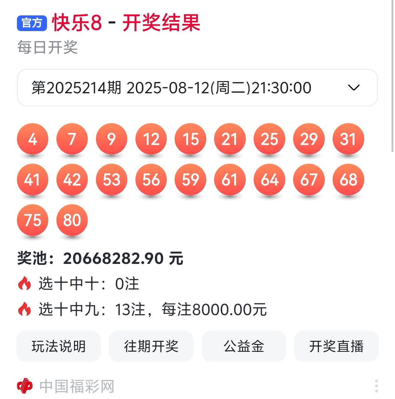 大伙都知道,玩彩票得理性,谁也不能打包票百分百中奖,别人的看法能参考,自己的判断也不能丢。但我这次对2025215期福彩快乐8的分析,那可是下足了功夫!