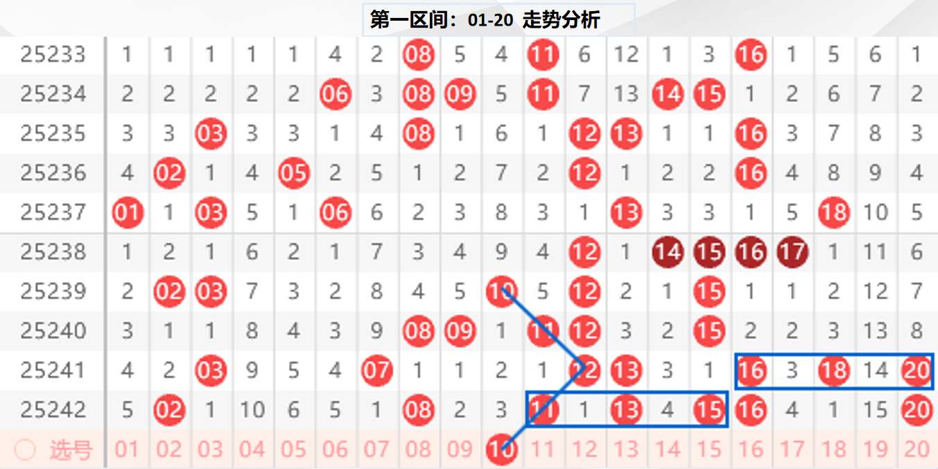 一区分析:【01-20】(走势图标注号码非小黄车大底,请谨慎参考,具体思路将在直播间分享讨论)