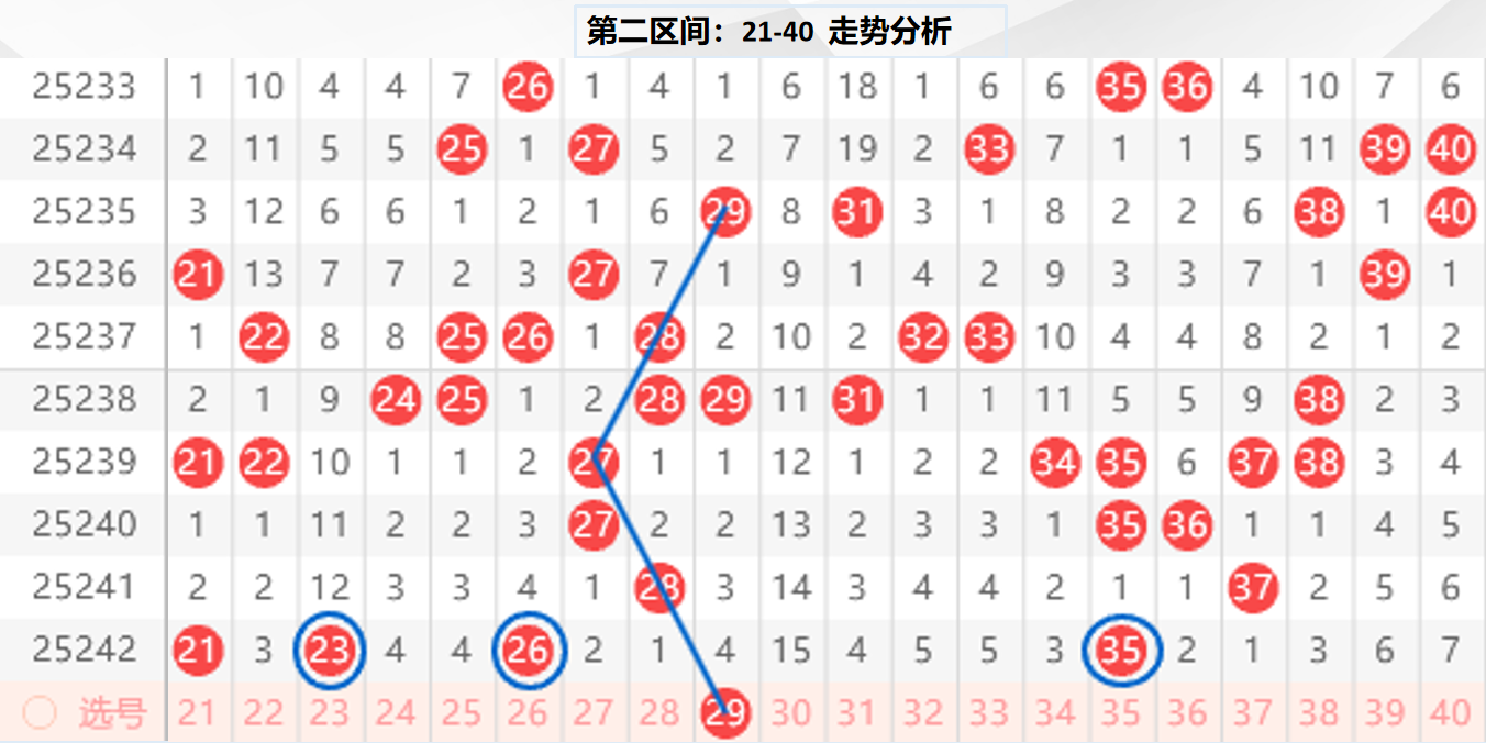 二区分析:【21-40】(走势图标注号码非小黄车大底,请谨慎参考,具体思路将在直播间分享讨论)