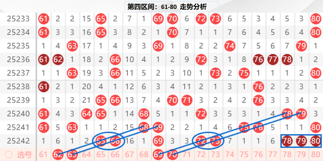 四区分析:【61-80】(走势图标注号码非小黄车大底,请谨慎参考,具体思路将在直播间分享讨论)